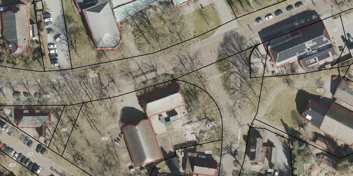 Het perceel waarop Hoofdstraat 55 staat heeft een oppervlakte van 3657 m². Dit is een zeer groot perceel. De perceeloppervlakte wordt geregistreerd door het Kadaster. Gedetailleerde informatie over de maten van dit perceel kunt u vinden in het rapport Kadastrale kaart met maatvoering van Hoofdstraat 55.