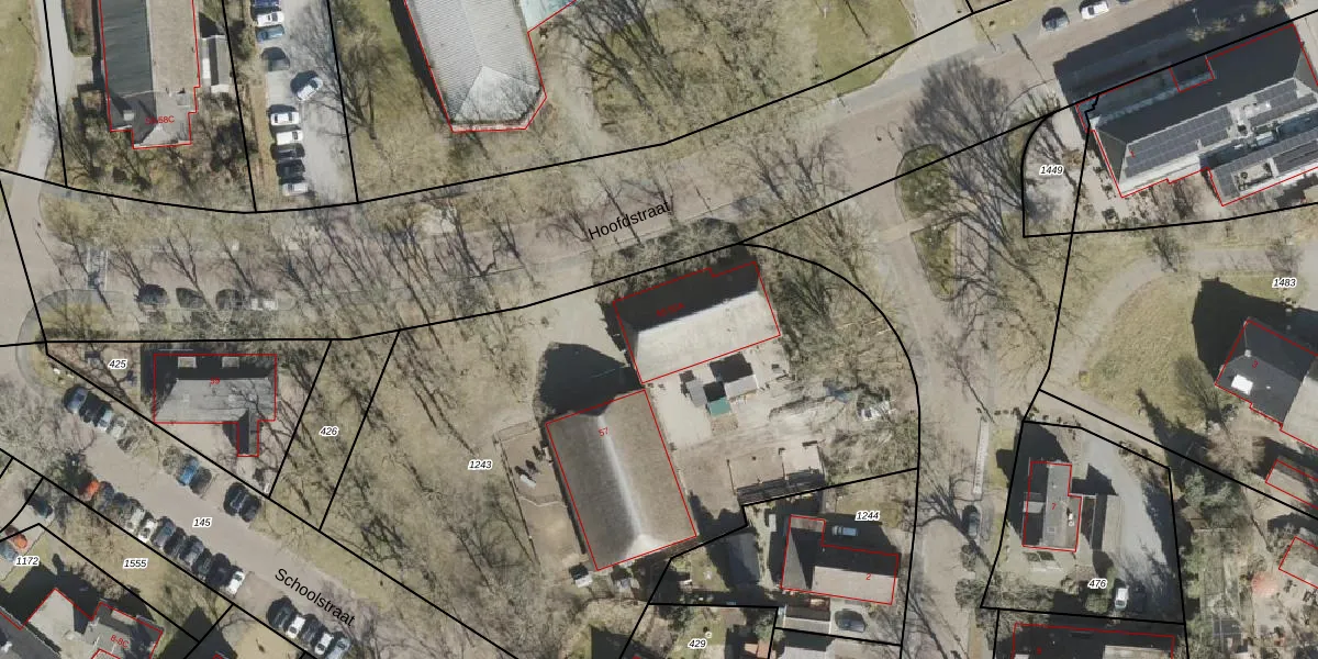 Het perceel waarop Hoofdstraat 55-A staat heeft een oppervlakte van 3657 m². Dit is een zeer groot perceel. De perceeloppervlakte wordt geregistreerd door het Kadaster. Gedetailleerde informatie over de maten van dit perceel kunt u vinden in het rapport Kadastrale kaart met maatvoering van Hoofdstraat 55-A.