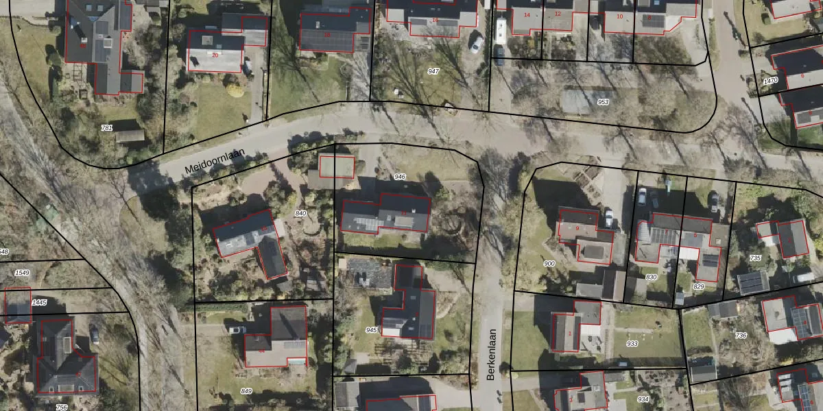 Het perceel waarop Meidoornlaan 11 staat heeft een oppervlakte van 956 m². Dit is een groot perceel. De perceeloppervlakte wordt geregistreerd door het Kadaster. Gedetailleerde informatie over de maten van dit perceel kunt u vinden in het rapport Kadastrale kaart met maatvoering van Meidoornlaan 11.