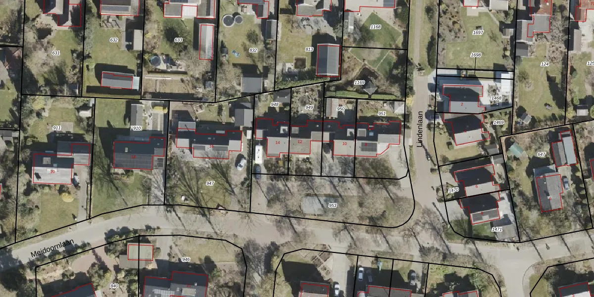 Het perceel waarop Meidoornlaan 12 staat heeft een oppervlakte van 341 m². Dit is een groot perceel. De perceeloppervlakte wordt geregistreerd door het Kadaster. Gedetailleerde informatie over de maten van dit perceel kunt u vinden in het rapport Kadastrale kaart met maatvoering van Meidoornlaan 12.