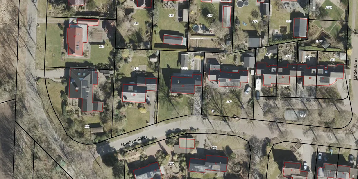 Het perceel waarop Meidoornlaan 18 staat heeft een oppervlakte van 941 m². Dit is een groot perceel. De perceeloppervlakte wordt geregistreerd door het Kadaster. Gedetailleerde informatie over de maten van dit perceel kunt u vinden in het rapport Kadastrale kaart met maatvoering van Meidoornlaan 18.