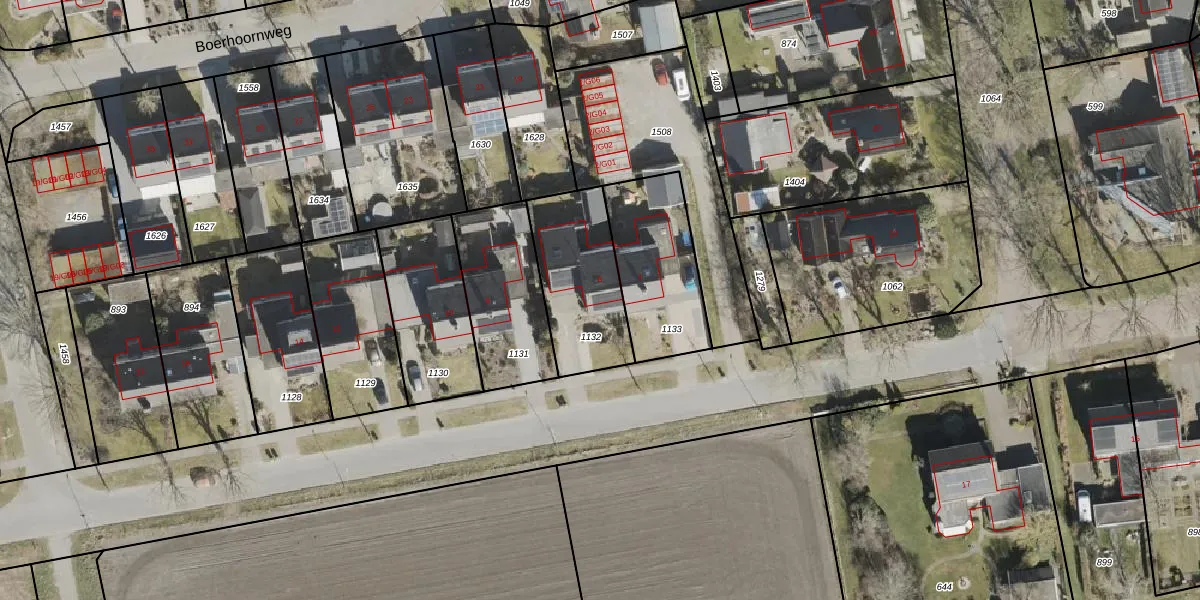 Het adres ligt op het perceel ODN00-I-1132, dat zich in de kadastrale gemeente Odoorn bevindt. De gemiddelde perceelgrootte in Odoorn is 1,4 ha. Dit perceel is kleiner: de perceeloppervlakte bedraagt 390 m². De grootste perceeloppervlakte in de kadastrale gemeente is 69,9 ha. De kleinste oppervlakte bedraagt 1 m². Er zijn geen andere adressen aanwezig op het perceel. De huidige grenzen van het perceel zijn digitaal in de Basisregistratie Kadaster (BRK) geregistreerd op 24-08-2005.