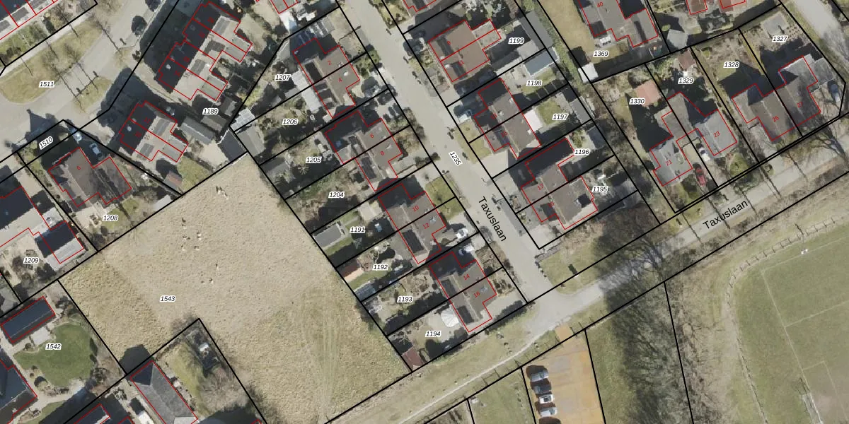Taxuslaan 10 is gelegen op kadastraal perceel ODN00I1191. Deze kadastrale aanduiding is uniek en wordt gebruikt door het Kadaster om eigendomsrechten en andere zakelijke rechten vast te leggen. Het perceel maakt onderdeel uit van de kadastrale gemeente Odoorn.