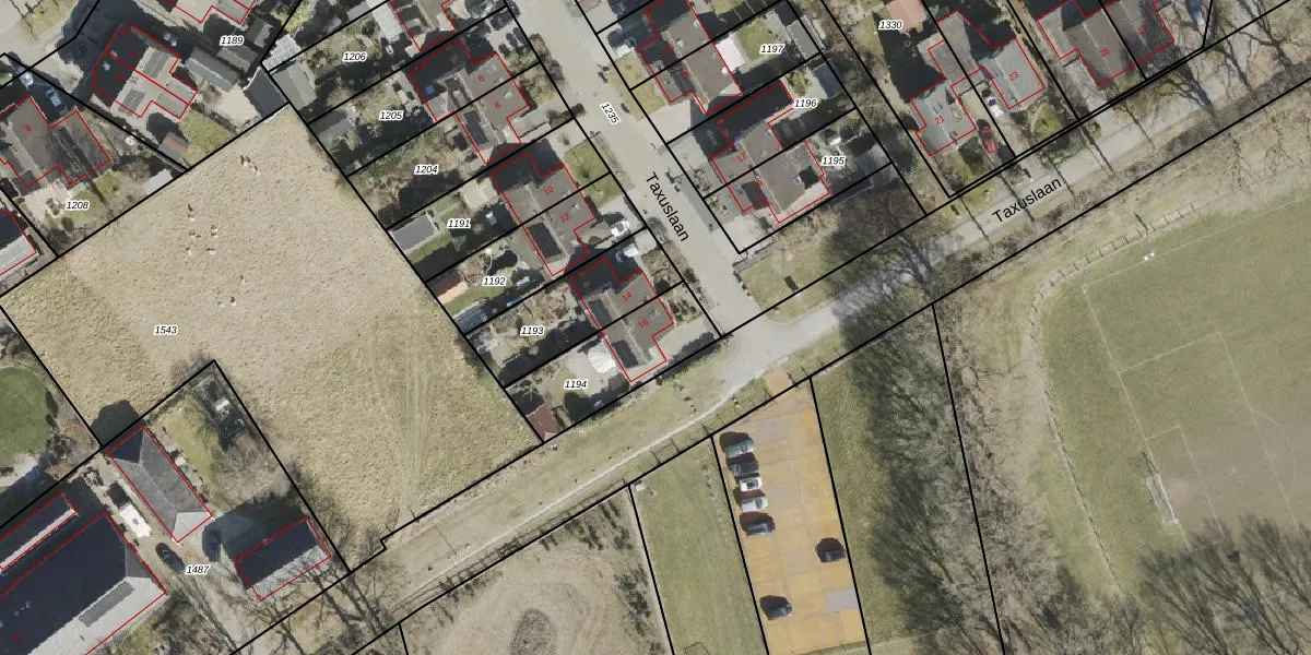 Taxuslaan 16 is gelegen op kadastraal perceel ODN00I1194. Deze kadastrale aanduiding is uniek en wordt gebruikt door het Kadaster om eigendomsrechten en andere zakelijke rechten vast te leggen. Het perceel maakt onderdeel uit van de kadastrale gemeente Odoorn.