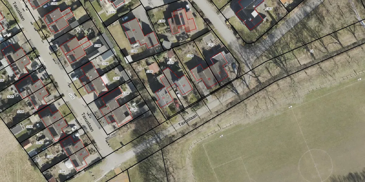 Taxuslaan 23 is gelegen op kadastraal perceel ODN00I1329. Deze kadastrale aanduiding is uniek en wordt gebruikt door het Kadaster om eigendomsrechten en andere zakelijke rechten vast te leggen. Het perceel maakt onderdeel uit van de kadastrale gemeente Odoorn.