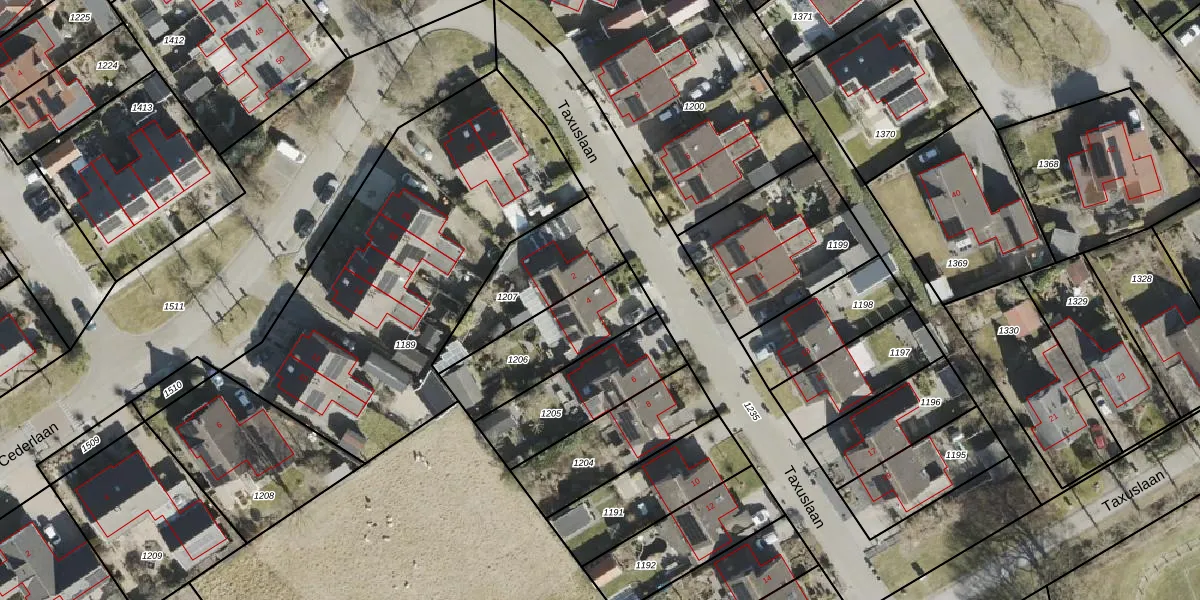 Taxuslaan 4 is gelegen op kadastraal perceel ODN00I1206. Deze kadastrale aanduiding is uniek en wordt gebruikt door het Kadaster om eigendomsrechten en andere zakelijke rechten vast te leggen. Het perceel maakt onderdeel uit van de kadastrale gemeente Odoorn.