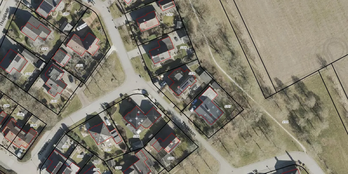 Thujalaan 19 is gelegen op kadastraal perceel ODN00I1378. Deze kadastrale aanduiding is uniek en wordt gebruikt door het Kadaster om eigendomsrechten en andere zakelijke rechten vast te leggen. Het perceel maakt onderdeel uit van de kadastrale gemeente Odoorn.