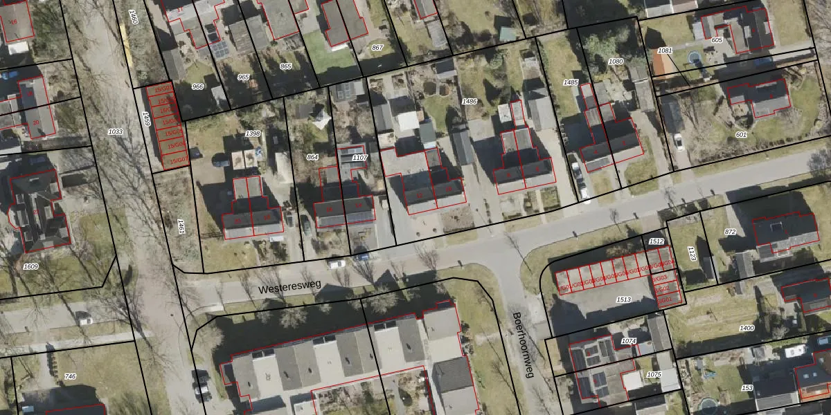 Het perceel waarop Westeresweg 12 staat heeft een oppervlakte van 1853 m². Dit is een zeer groot perceel. De perceeloppervlakte wordt geregistreerd door het Kadaster. Gedetailleerde informatie over de maten van dit perceel kunt u vinden in het rapport Kadastrale kaart met maatvoering van Westeresweg 12.