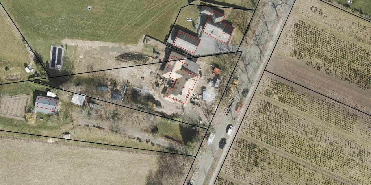 Zuideinde 32 is gelegen op kadastraal perceel ODN00R42. Deze kadastrale aanduiding is uniek en wordt gebruikt door het Kadaster om eigendomsrechten en andere zakelijke rechten vast te leggen. Het perceel maakt onderdeel uit van de kadastrale gemeente Odoorn.