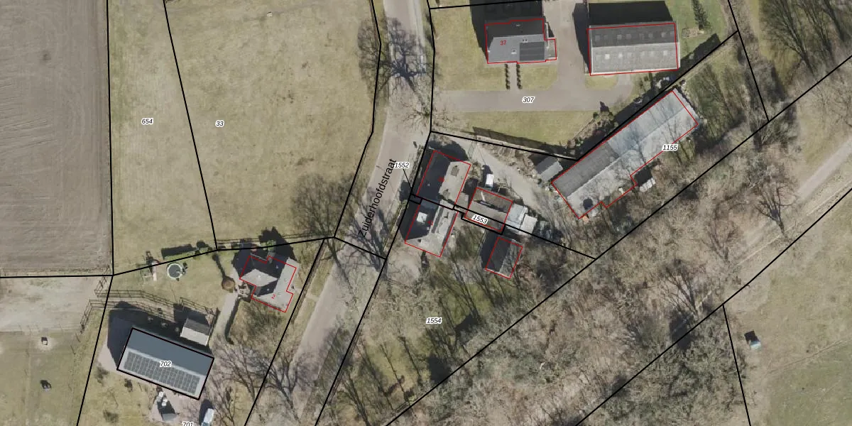 Het adres ligt op het perceel ODN00-I-1554, dat zich in de kadastrale gemeente Odoorn bevindt. Het perceel is kleiner dan gemiddeld in Odoorn. Het perceel is 1785 m² groot, terwijl het gemiddelde ligt op 1,4 ha. Het grootste perceel in de kadastrale gemeente is 69,9 ha. Het kleinste perceel heeft een oppervlakte van 1 m². Er zijn geen andere adressen aanwezig op het perceel. De laatste wijziging in het de Basisregistratie Kadaster (BRK) was op 10-07-2013.
