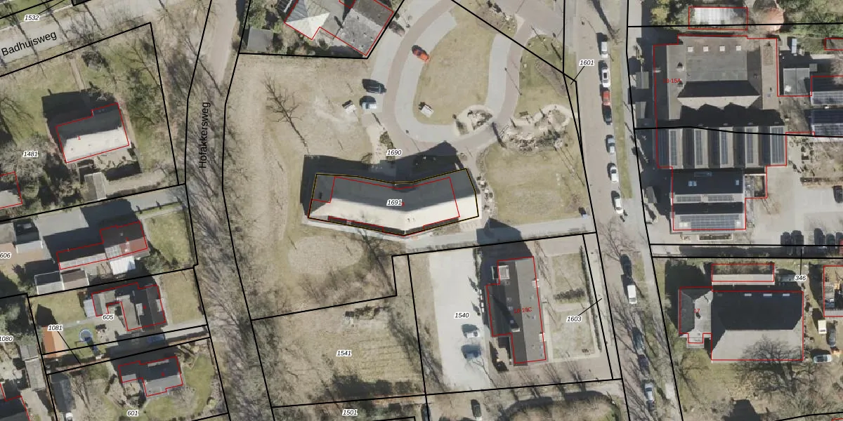 Het perceel waarop het adres ligt is ODN00-I-1691. De afkorting 'ODN00' staat voor kadastrale gemeente Odoorn. Het perceel is 456 m² groot. Dat is kleiner dan de gemiddelde perceeloppervlakte in Odoorn, dat op 1,4 ha ligt. Het kleinste perceel in de kadastrale gemeente is 1 m² groot. De grootste perceeloppervlakte is 69,9 ha. Op het perceel bevinden zich geen andere adressen. In de Basisregistratie Kadaster (BRK) werden de grenzen van het perceel geregistreerd op 10-07-2023.