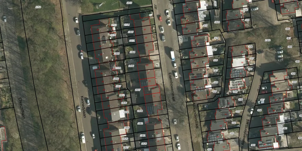 Het perceel waarop Eisenhowerstraat 17 staat heeft een oppervlakte van 510 m². Dit is een groot perceel. De perceeloppervlakte wordt geregistreerd door het Kadaster. Gedetailleerde informatie over de maten van dit perceel kunt u vinden in het rapport Kadastrale kaart met maatvoering van Eisenhowerstraat 17.
