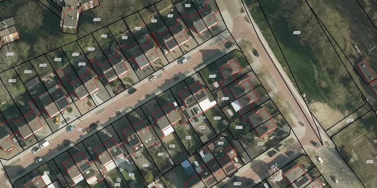 Het perceel waarop Eiswinkel 22 staat heeft een oppervlakte van 313 m². Dit is een groot perceel. De perceeloppervlakte wordt geregistreerd door het Kadaster. Gedetailleerde informatie over de maten van dit perceel kunt u vinden in het rapport Kadastrale kaart met maatvoering van Eiswinkel 22.