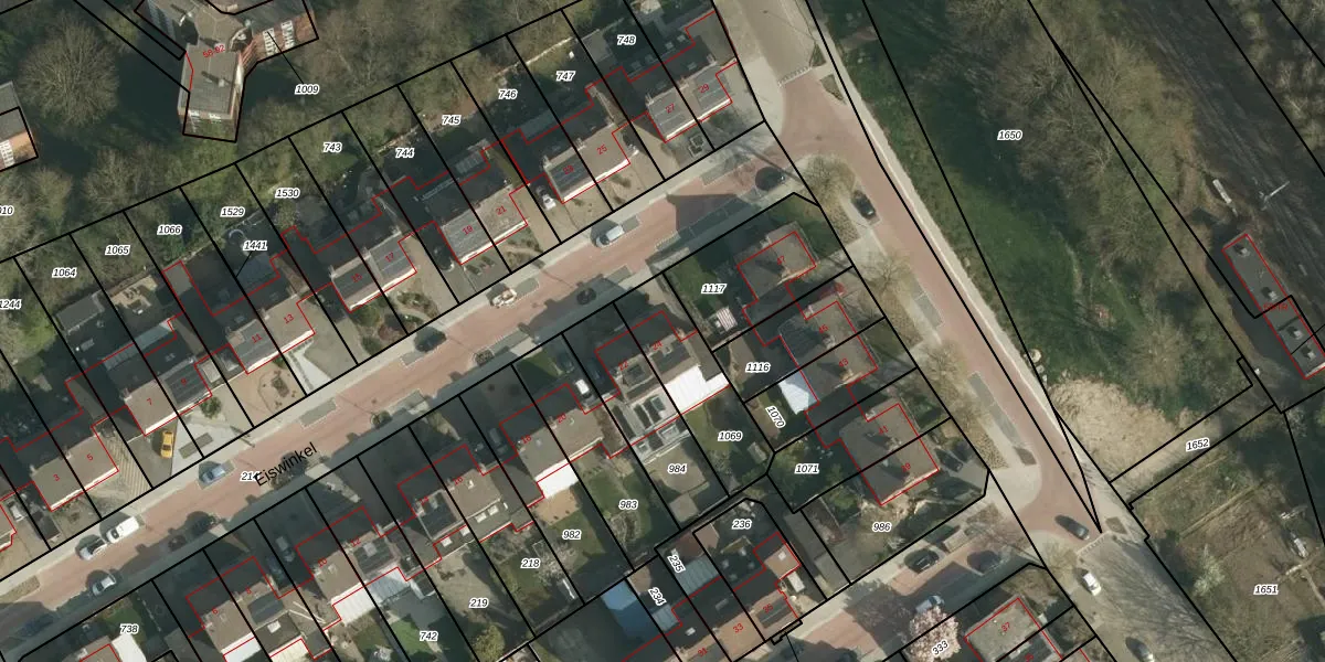 Het perceel waarop Eiswinkel 24 staat heeft een oppervlakte van 310 m². Dit is een groot perceel. De perceeloppervlakte wordt geregistreerd door het Kadaster. Gedetailleerde informatie over de maten van dit perceel kunt u vinden in het rapport Kadastrale kaart met maatvoering van Eiswinkel 24.
