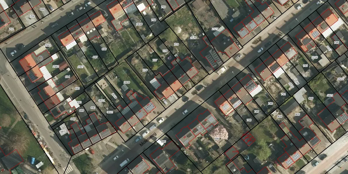 Het perceel waarop Molenweg 90 staat heeft een oppervlakte van 254 m². Dit is een middelgroot perceel. De perceeloppervlakte wordt geregistreerd door het Kadaster. Gedetailleerde informatie over de maten van dit perceel kunt u vinden in het rapport Kadastrale kaart met maatvoering van Molenweg 90.