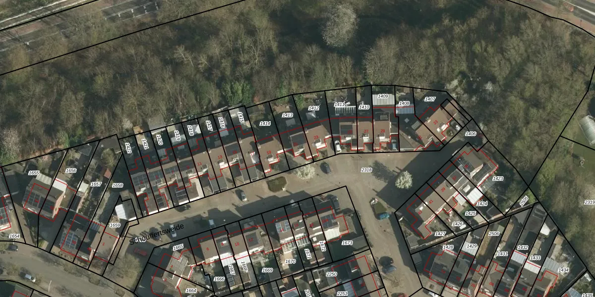 Het perceel waarop Schouffertsweide 21 staat heeft een oppervlakte van 201 m². Dit is een middelgroot perceel. De perceeloppervlakte wordt geregistreerd door het Kadaster. Gedetailleerde informatie over de maten van dit perceel kunt u vinden in het rapport Kadastrale kaart met maatvoering van Schouffertsweide 21.