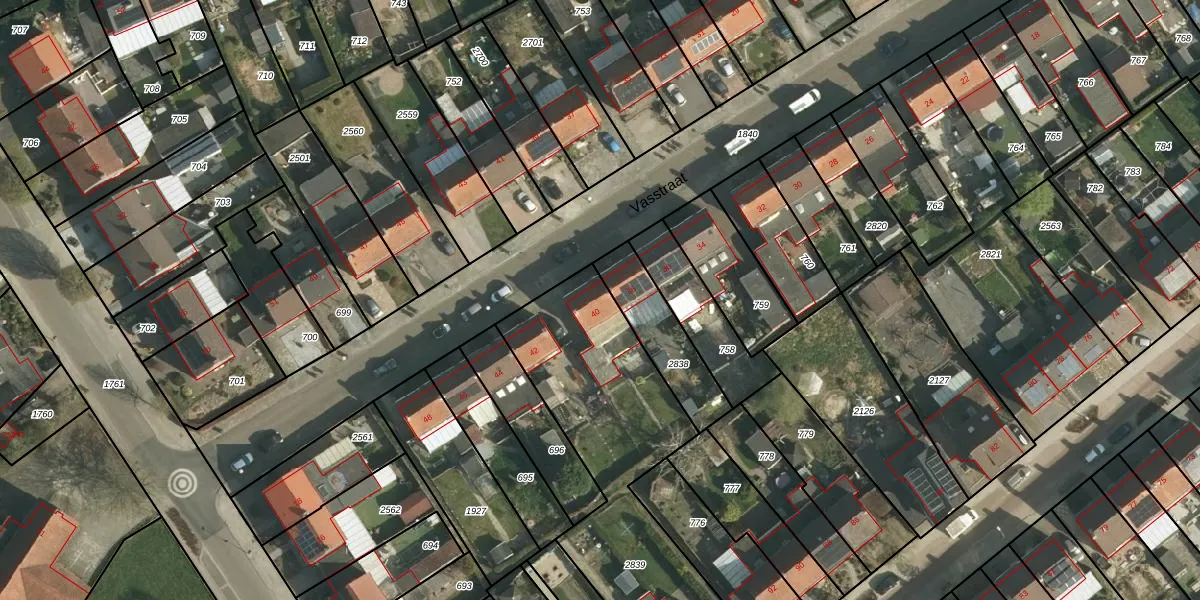 Het perceel waarop Vasstraat 40 staat heeft een oppervlakte van 1244 m². Dit is een zeer groot perceel. De perceeloppervlakte wordt geregistreerd door het Kadaster. Gedetailleerde informatie over de maten van dit perceel kunt u vinden in het rapport Kadastrale kaart met maatvoering van Vasstraat 40.
