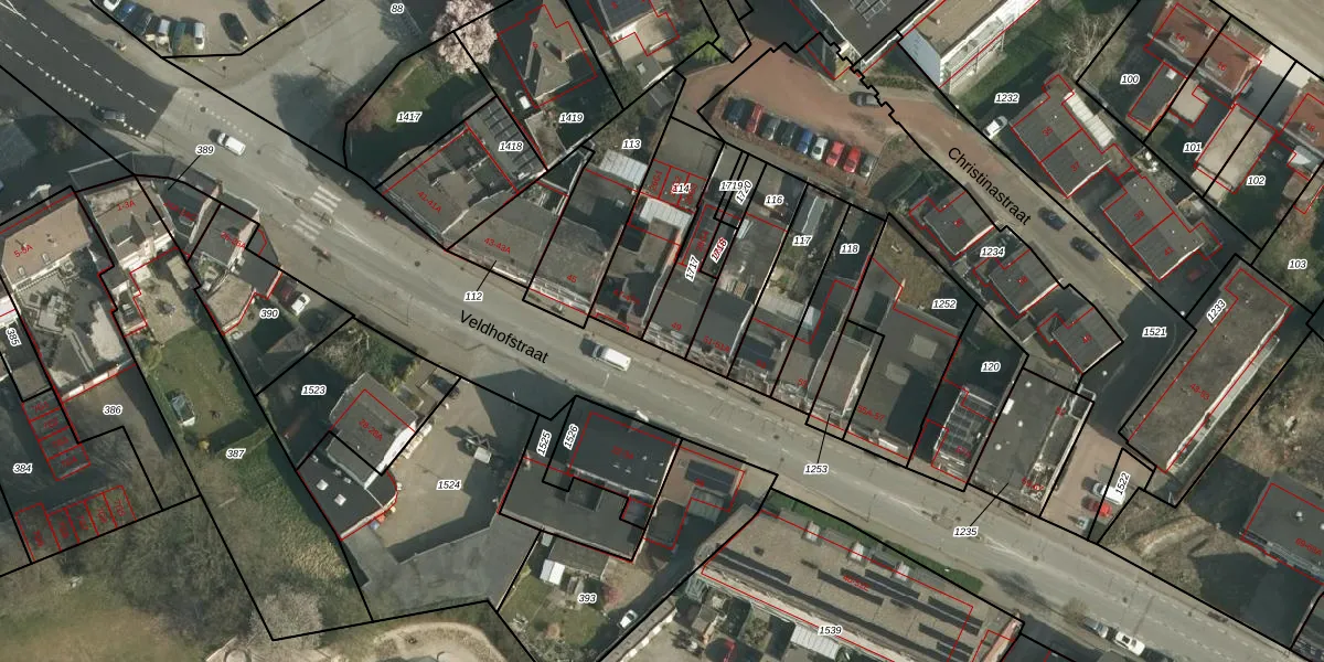 Veldhofstraat 49 is gelegen op kadastraal perceel KRD00P1717. Deze kadastrale aanduiding is uniek en wordt gebruikt door het Kadaster om eigendomsrechten en andere zakelijke rechten vast te leggen. Het perceel maakt onderdeel uit van de kadastrale gemeente Kerkrade.