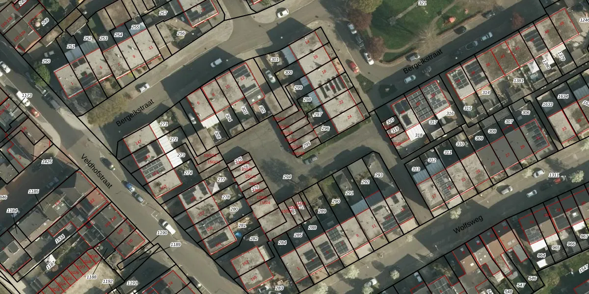 Wolfsweg 15-G-17 is gelegen op kadastraal perceel KRD00P296. Deze kadastrale aanduiding is uniek en wordt gebruikt door het Kadaster om eigendomsrechten en andere zakelijke rechten vast te leggen. Het perceel maakt onderdeel uit van de kadastrale gemeente Kerkrade.