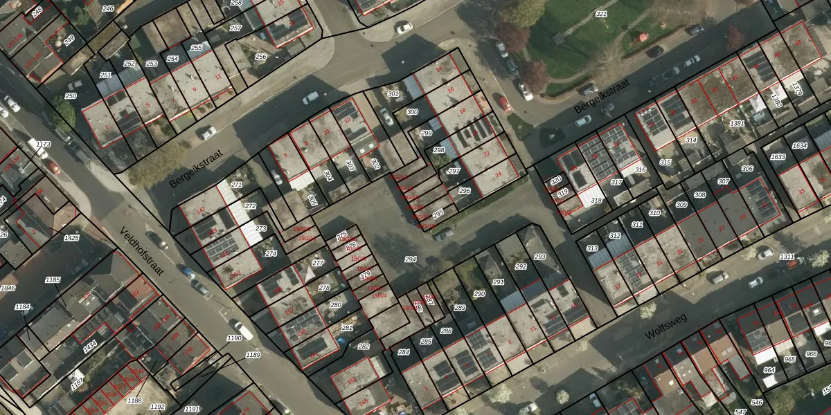 Wolfsweg 15-G-16 is gelegen op kadastraal perceel KRD00P297. Deze kadastrale aanduiding is uniek en wordt gebruikt door het Kadaster om eigendomsrechten en andere zakelijke rechten vast te leggen. Het perceel maakt onderdeel uit van de kadastrale gemeente Kerkrade.
