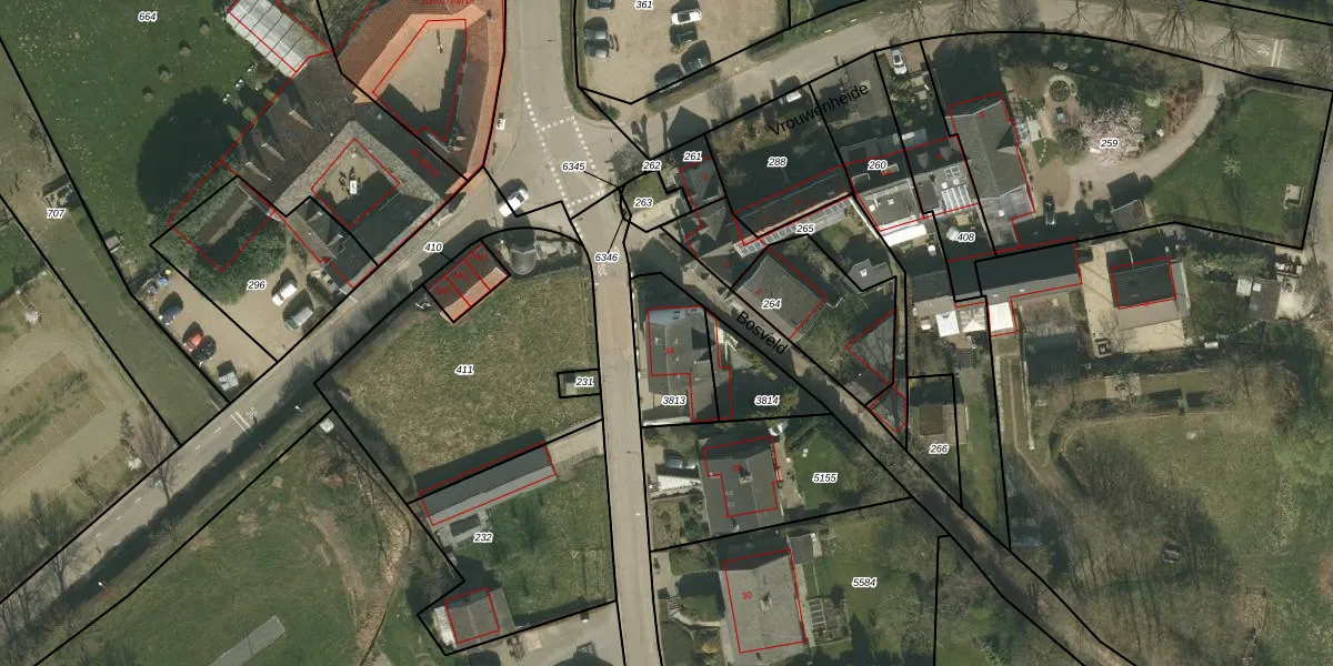 Gebruik de zoekbalk of klik op een perceel voor informatie over de adressen binnen dit perceel.