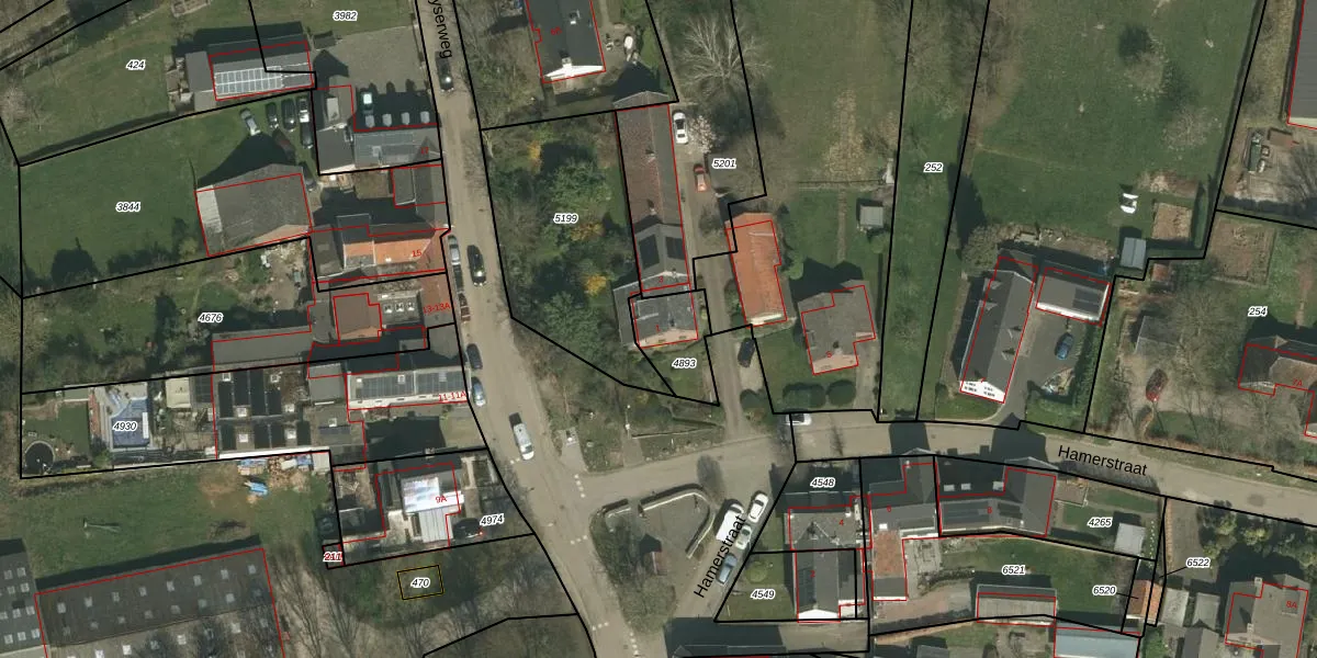 Hamerstraat 1 is gelegen op kadastraal perceel WTM00A4893. Deze kadastrale aanduiding is uniek en wordt gebruikt door het Kadaster om eigendomsrechten en andere zakelijke rechten vast te leggen. Het perceel maakt onderdeel uit van de kadastrale gemeente Wittem.