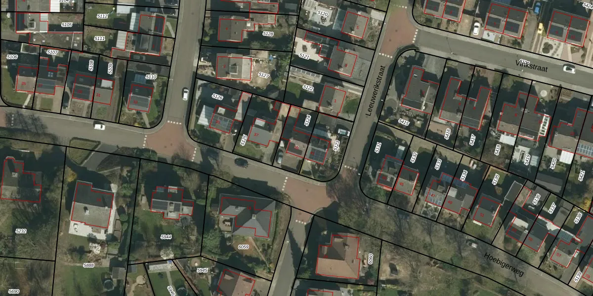 Gebruik de zoekbalk of klik op een perceel voor informatie over de adressen binnen dit perceel.