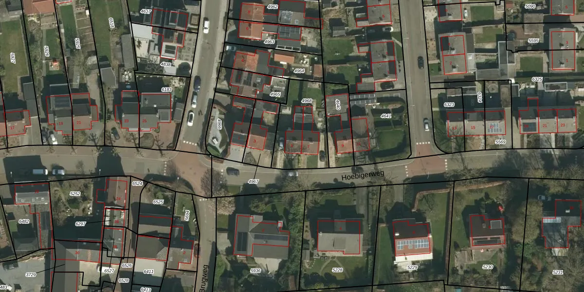 Het perceel waarop Hoebigerweg 5 staat heeft een oppervlakte van 495 m². Dit is een groot perceel. De perceeloppervlakte wordt geregistreerd door het Kadaster. Gedetailleerde informatie over de maten van dit perceel kunt u vinden in het rapport Kadastrale kaart met maatvoering van Hoebigerweg 5.