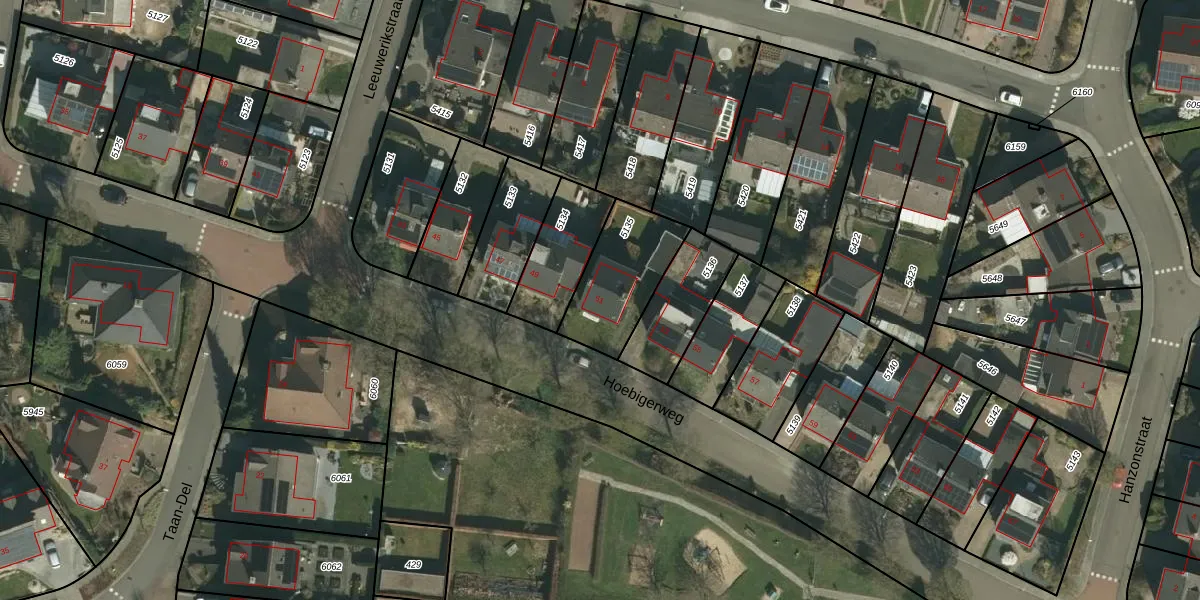 Het perceel waarop Hoebigerweg 51 staat heeft een oppervlakte van 302 m². Dit is een groot perceel. De perceeloppervlakte wordt geregistreerd door het Kadaster. Gedetailleerde informatie over de maten van dit perceel kunt u vinden in het rapport Kadastrale kaart met maatvoering van Hoebigerweg 51.
