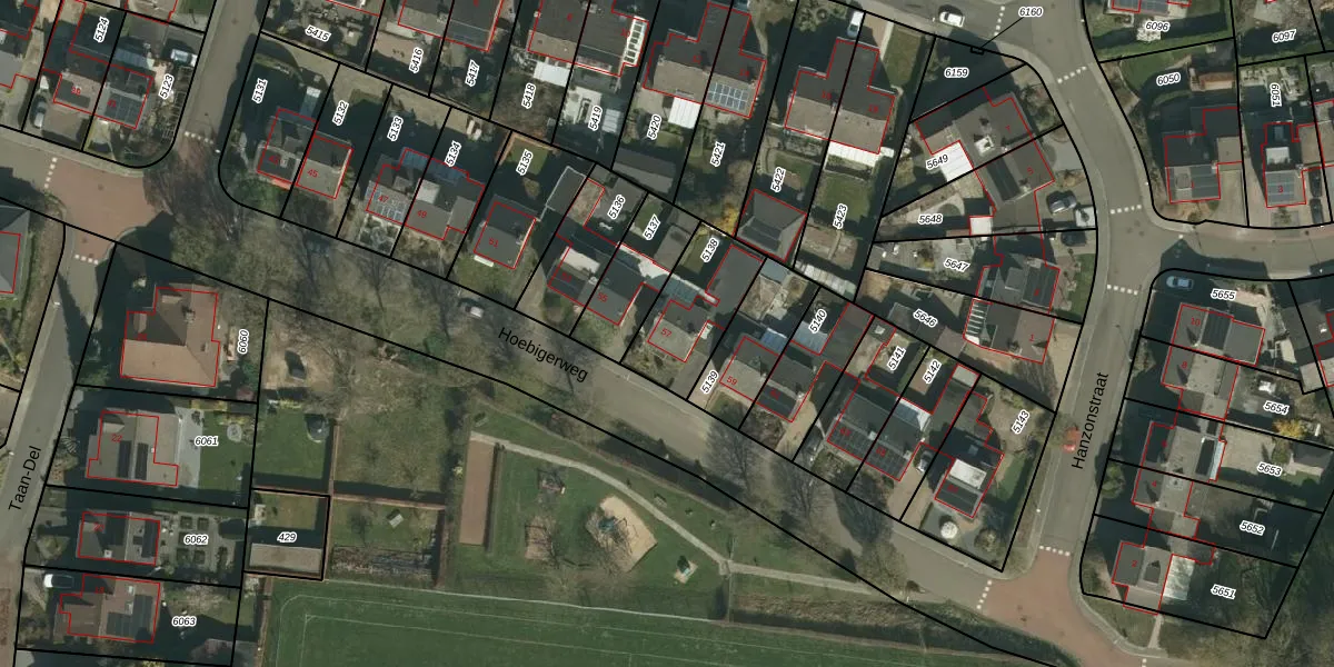 Gebruik de zoekbalk of klik op een perceel voor informatie over de adressen binnen dit perceel.