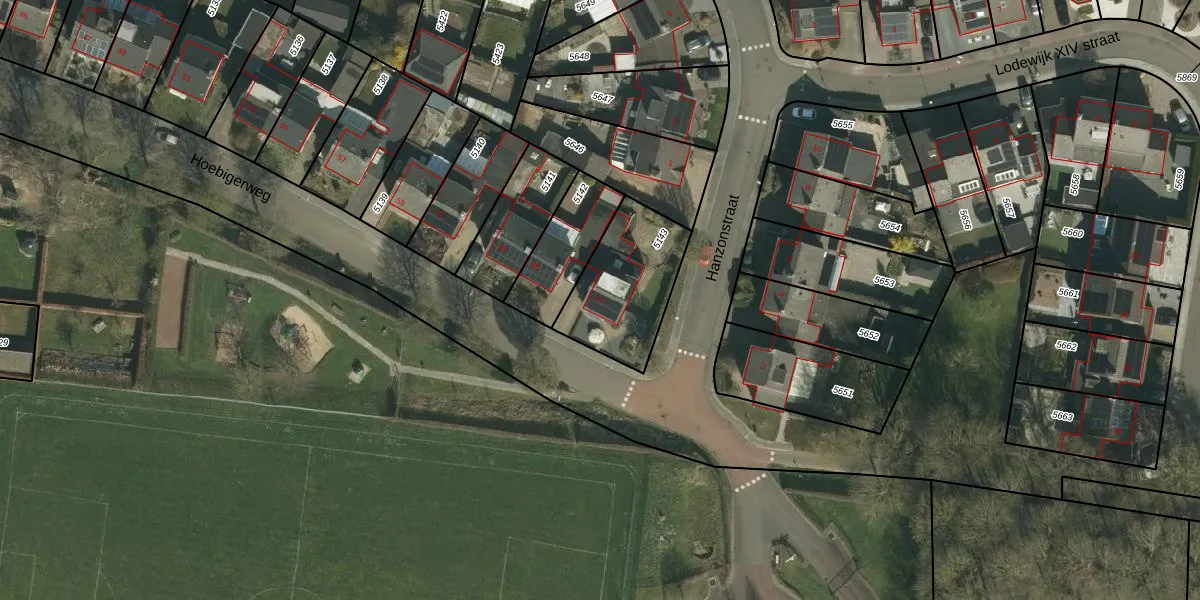 Het perceel waarop Hoebigerweg 67 staat heeft een oppervlakte van 363 m². Dit is een groot perceel. De perceeloppervlakte wordt geregistreerd door het Kadaster. Gedetailleerde informatie over de maten van dit perceel kunt u vinden in het rapport Kadastrale kaart met maatvoering van Hoebigerweg 67.