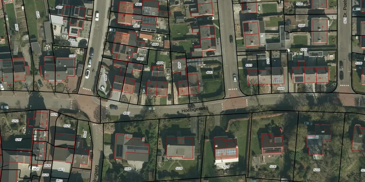 Het perceel waarop Hoebigerweg 9 staat heeft een oppervlakte van 245 m². Dit is een middelgroot perceel. De perceeloppervlakte wordt geregistreerd door het Kadaster. Gedetailleerde informatie over de maten van dit perceel kunt u vinden in het rapport Kadastrale kaart met maatvoering van Hoebigerweg 9.