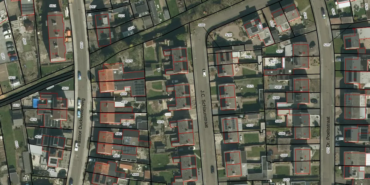 Het perceel waarop J.C. Schlaunstraat 11 staat heeft een oppervlakte van 2260 m². Dit is een zeer groot perceel. De perceeloppervlakte wordt geregistreerd door het Kadaster. Gedetailleerde informatie over de maten van dit perceel kunt u vinden in het rapport Kadastrale kaart met maatvoering van J.C. Schlaunstraat 11.