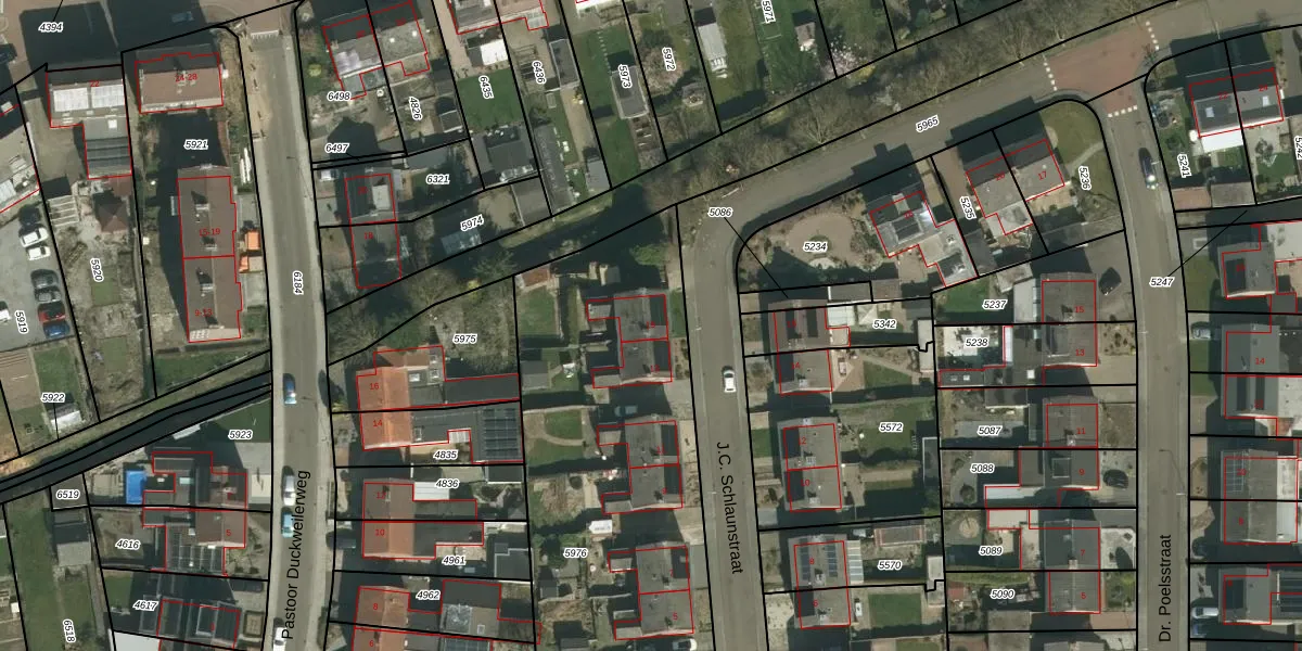 Het perceel waarop J.C. Schlaunstraat 15 staat heeft een oppervlakte van 2260 m². Dit is een zeer groot perceel. De perceeloppervlakte wordt geregistreerd door het Kadaster. Gedetailleerde informatie over de maten van dit perceel kunt u vinden in het rapport Kadastrale kaart met maatvoering van J.C. Schlaunstraat 15.