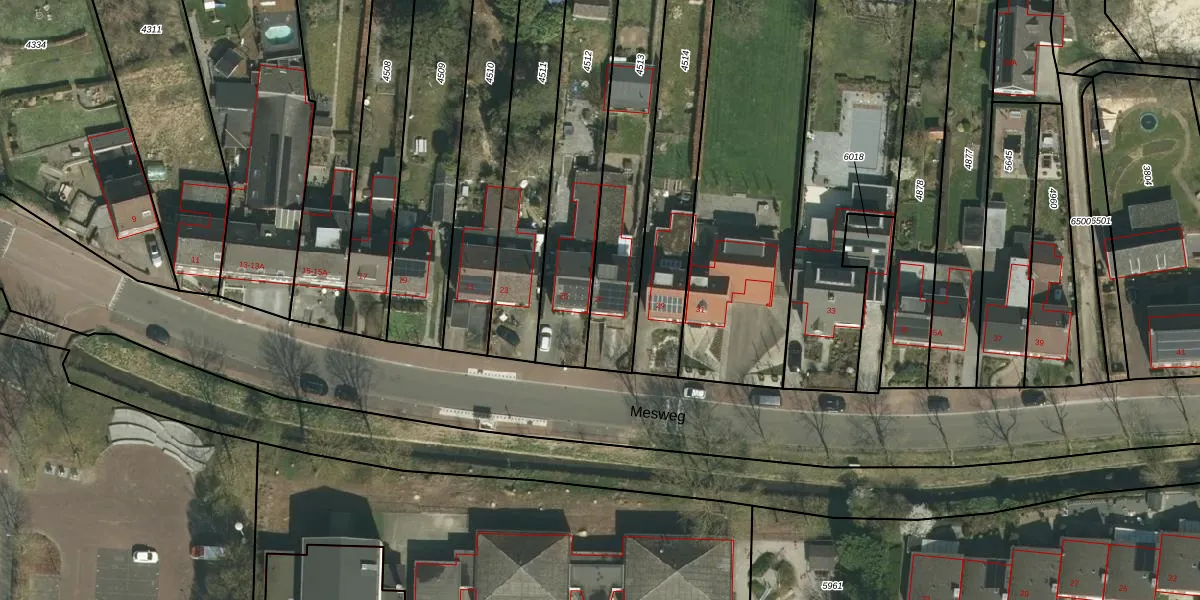 Het perceel waarop Mesweg 27 staat heeft een oppervlakte van 675 m². Dit is een groot perceel. De perceeloppervlakte wordt geregistreerd door het Kadaster. Gedetailleerde informatie over de maten van dit perceel kunt u vinden in het rapport Kadastrale kaart met maatvoering van Mesweg 27.