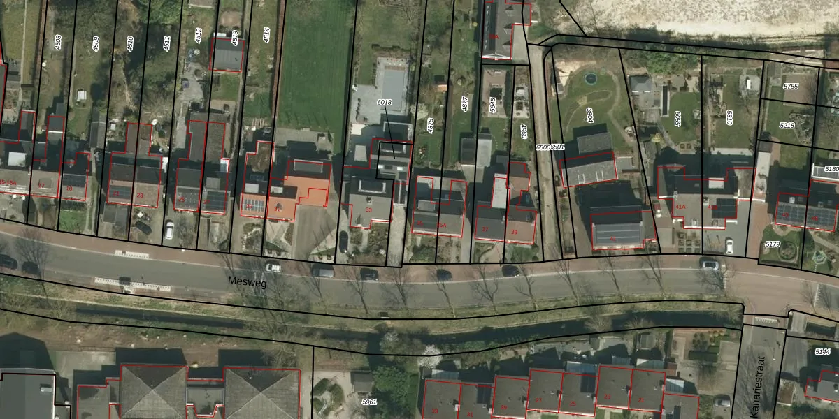 Het perceel waarop Mesweg 35-1 staat heeft een oppervlakte van 700 m². Dit is een groot perceel. De perceeloppervlakte wordt geregistreerd door het Kadaster. Gedetailleerde informatie over de maten van dit perceel kunt u vinden in het rapport Kadastrale kaart met maatvoering van Mesweg 35-1.
