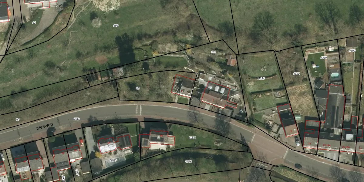 Mesweg 5 is gelegen op kadastraal perceel WTM00R80. Deze kadastrale aanduiding is uniek en wordt gebruikt door het Kadaster om eigendomsrechten en andere zakelijke rechten vast te leggen. Het perceel maakt onderdeel uit van de kadastrale gemeente Wittem.