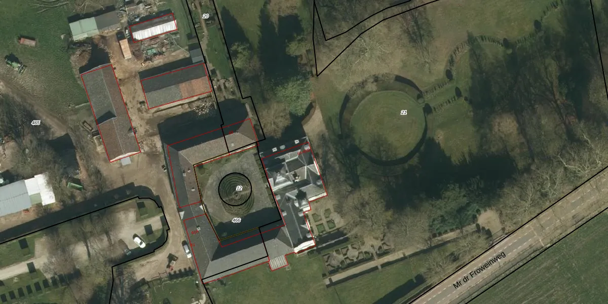 Het perceel waarop Mr dr Froweinweg 65 staat heeft een oppervlakte van 1,3 ha. Dit is een zeer groot perceel. De perceeloppervlakte wordt geregistreerd door het Kadaster. Gedetailleerde informatie over de maten van dit perceel kunt u vinden in het rapport Kadastrale kaart met maatvoering van Mr dr Froweinweg 65.