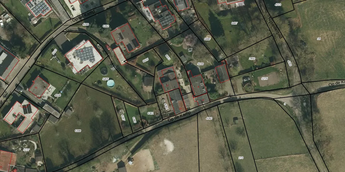 Op de Kamp 12 is gelegen op kadastraal perceel WTM00A6013. Deze kadastrale aanduiding is uniek en wordt gebruikt door het Kadaster om eigendomsrechten en andere zakelijke rechten vast te leggen. Het perceel maakt onderdeel uit van de kadastrale gemeente Wittem.