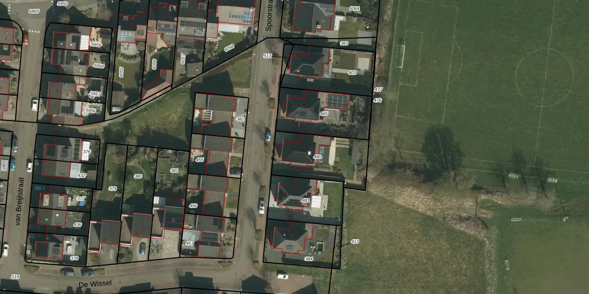 Gebruik de zoekbalk of klik op een perceel voor informatie over de adressen binnen dit perceel.