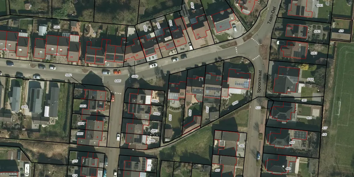 Het perceel waarop Taan-Del 10 staat heeft een oppervlakte van 383 m². Dit is een groot perceel. De perceeloppervlakte wordt geregistreerd door het Kadaster. Gedetailleerde informatie over de maten van dit perceel kunt u vinden in het rapport Kadastrale kaart met maatvoering van Taan-Del 10.