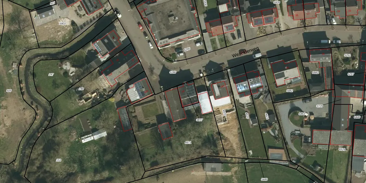 Wezelderweg 14 is gelegen op kadastraal perceel WTM00A3877. Deze kadastrale aanduiding is uniek en wordt gebruikt door het Kadaster om eigendomsrechten en andere zakelijke rechten vast te leggen. Het perceel maakt onderdeel uit van de kadastrale gemeente Wittem.