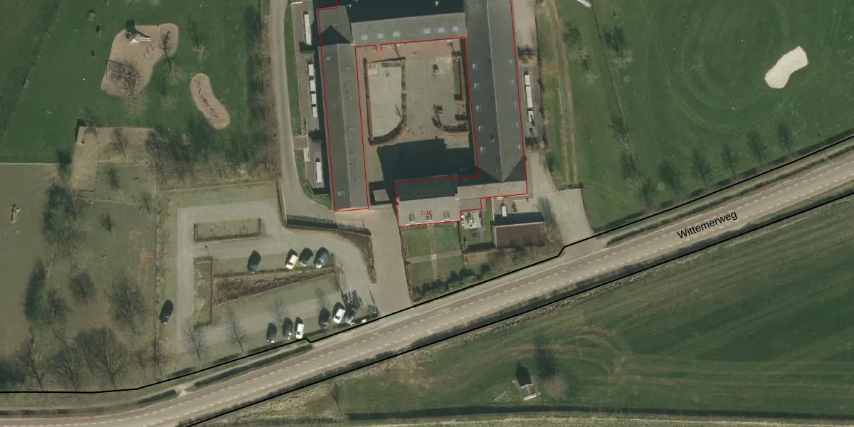 Het perceel waarop Wittemerweg 7 staat heeft een oppervlakte van 4,1 ha. Dit is een zeer groot perceel. De perceeloppervlakte wordt geregistreerd door het Kadaster. Gedetailleerde informatie over de maten van dit perceel kunt u vinden in het rapport Kadastrale kaart met maatvoering van Wittemerweg 7.