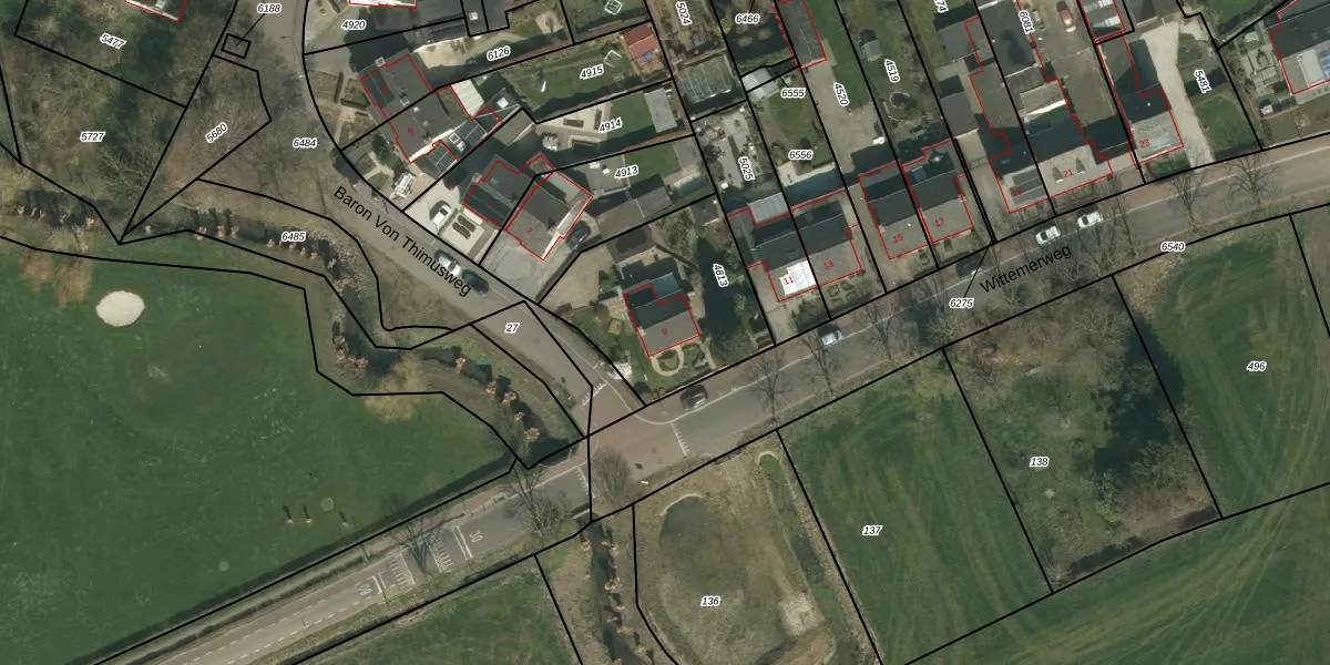 Wittemerweg 9 is gelegen op kadastraal perceel WTM00A4813. Deze kadastrale aanduiding is uniek en wordt gebruikt door het Kadaster om eigendomsrechten en andere zakelijke rechten vast te leggen. Het perceel maakt onderdeel uit van de kadastrale gemeente Wittem.