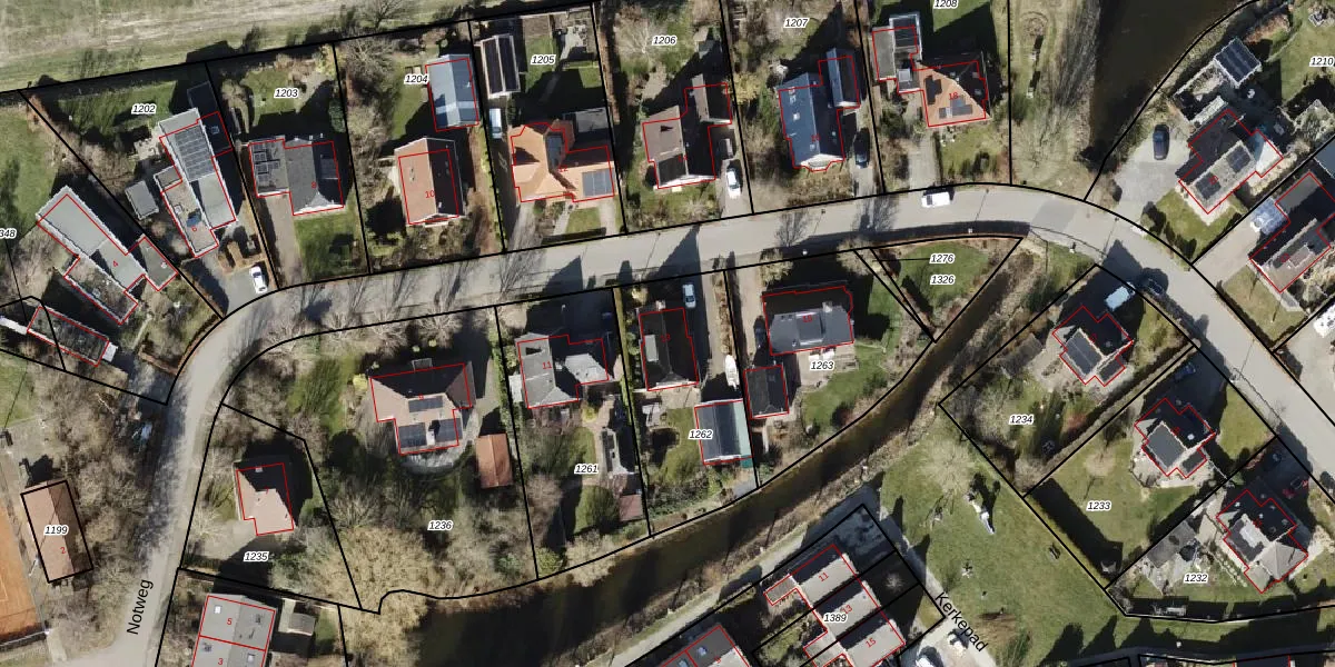 Het perceel waarop Notweg 13 staat heeft een oppervlakte van 608 m². Dit is een groot perceel. De perceeloppervlakte wordt geregistreerd door het Kadaster. Gedetailleerde informatie over de maten van dit perceel kunt u vinden in het rapport Kadastrale kaart met maatvoering van Notweg 13.