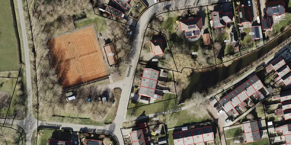 Het perceel waarop Notweg 5 staat heeft een oppervlakte van 736 m². Dit is een groot perceel. De perceeloppervlakte wordt geregistreerd door het Kadaster. Gedetailleerde informatie over de maten van dit perceel kunt u vinden in het rapport Kadastrale kaart met maatvoering van Notweg 5.