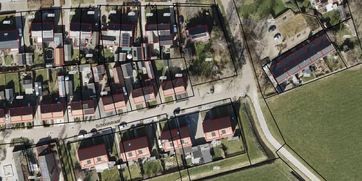 Het perceel waarop Schoolstraat 1 staat heeft een oppervlakte van 222 m². Dit is een middelgroot perceel. De perceeloppervlakte wordt geregistreerd door het Kadaster. Gedetailleerde informatie over de maten van dit perceel kunt u vinden in het rapport Kadastrale kaart met maatvoering van Schoolstraat 1.