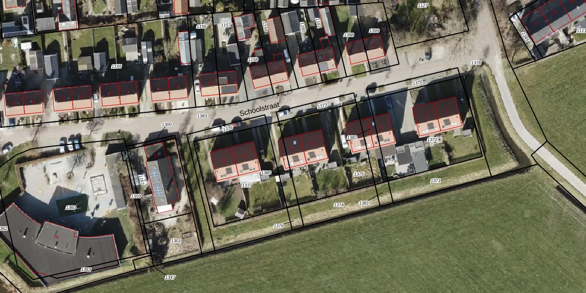 Het perceel waarop Schoolstraat 12 staat heeft een oppervlakte van 775 m². Dit is een groot perceel. De perceeloppervlakte wordt geregistreerd door het Kadaster. Gedetailleerde informatie over de maten van dit perceel kunt u vinden in het rapport Kadastrale kaart met maatvoering van Schoolstraat 12.