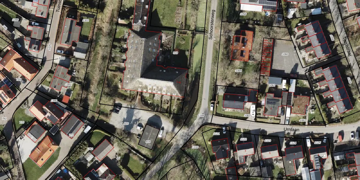 Het perceel waarop Schoorsterweg 4-J staat heeft een oppervlakte van 2373 m². Dit is een zeer groot perceel. De perceeloppervlakte wordt geregistreerd door het Kadaster. Gedetailleerde informatie over de maten van dit perceel kunt u vinden in het rapport Kadastrale kaart met maatvoering van Schoorsterweg 4-J.