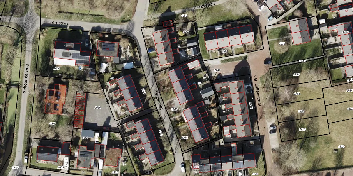Terpstraat 9 is gelegen op kadastraal perceel EZG00A1245. Deze kadastrale aanduiding is uniek en wordt gebruikt door het Kadaster om eigendomsrechten en andere zakelijke rechten vast te leggen. Het perceel maakt onderdeel uit van de kadastrale gemeente Ezinge.